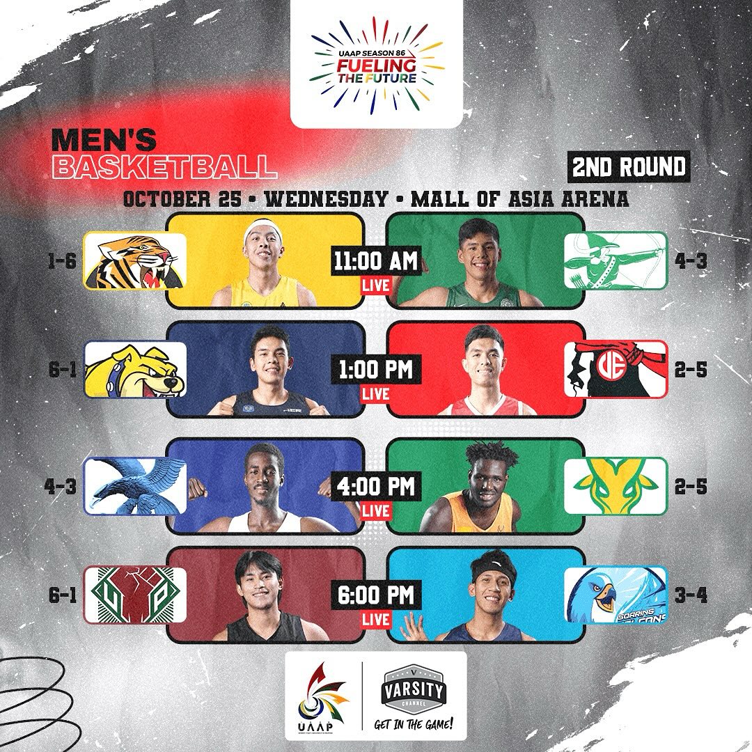 Top seeds University of the Philippines and National University face separate foes on Wednesday, Oct. 25, to kick off the second round of the UAAP Season 86 men’s basketball tournament at the Mall of Asia Arena in Pasay City.